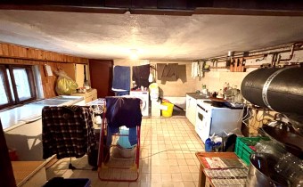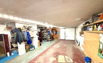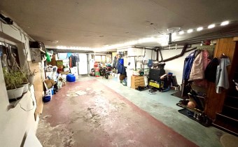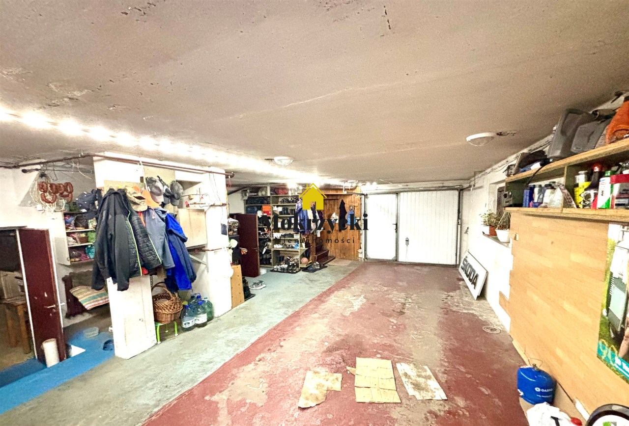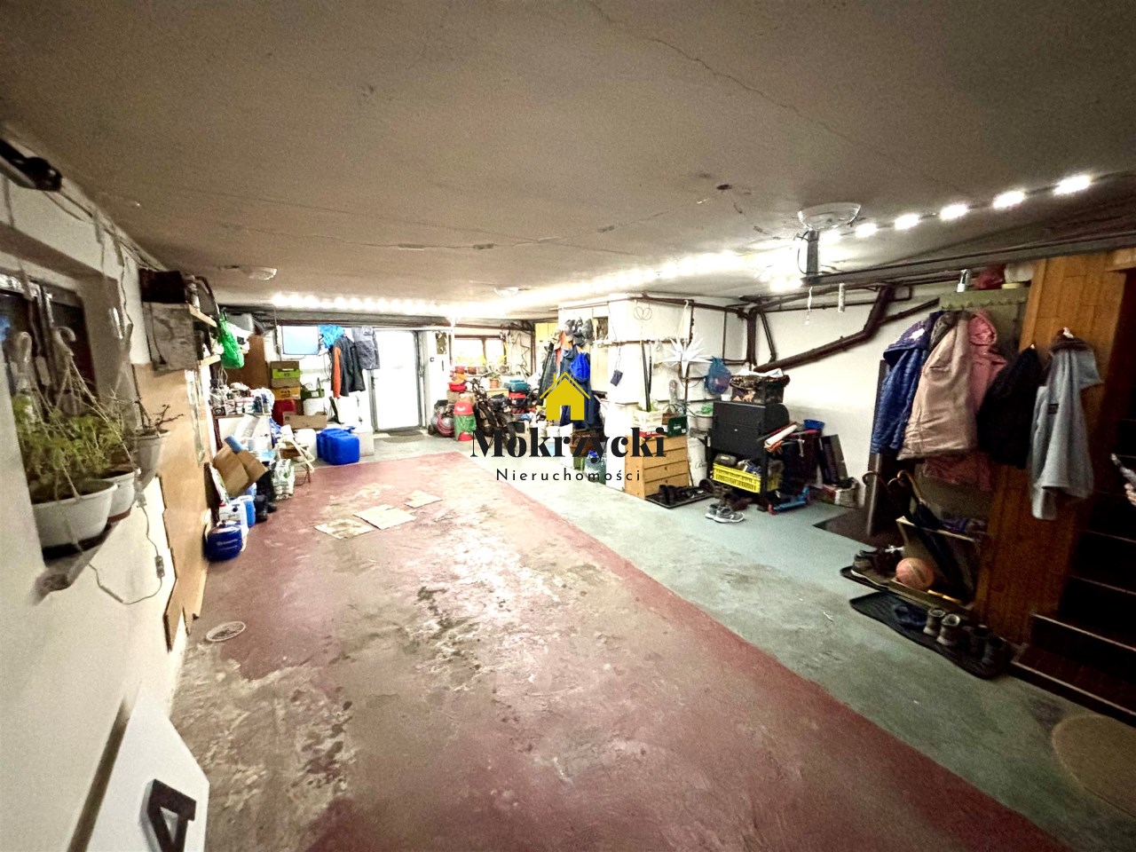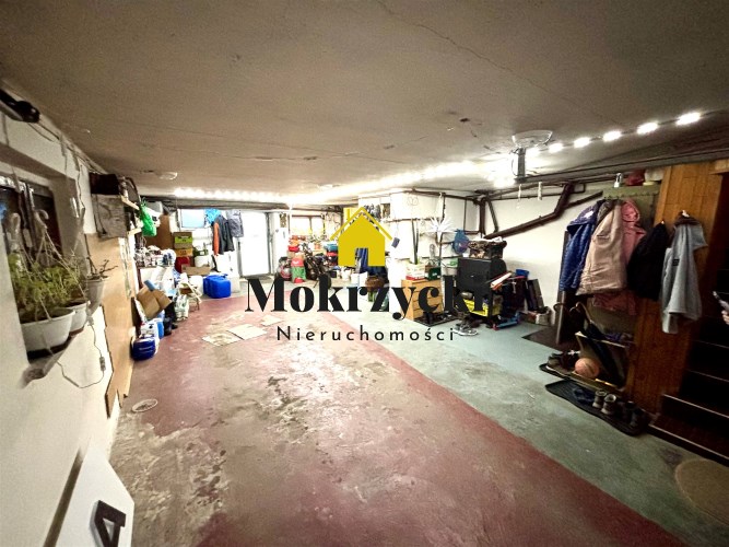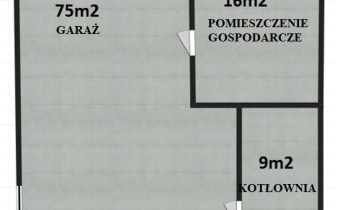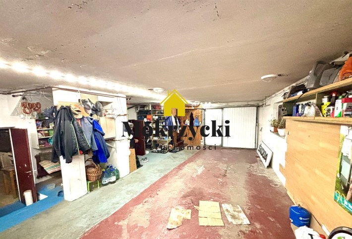 Duży garaż, pomieszczenie gospodarcze oraz kotłownia + schody wewnętrzne do części mieszkalnej.